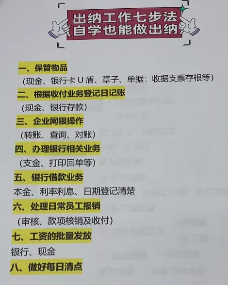 各位好,今天咱們一同學習出納的工作內容。總的原則:出納的職責是什么?出納負責企業資金的收付,實實在在與錢打交道。企業收錢,得經過出納;往外付錢,同樣也要經過出納。只要涉及資金使用,都是由出納與相關人員對接。從專業角度來說,出納付款這一行為,是在背后的會計完成賬務的審核、確認與記錄之后,才被允許進行的,這是正常流程。在整...